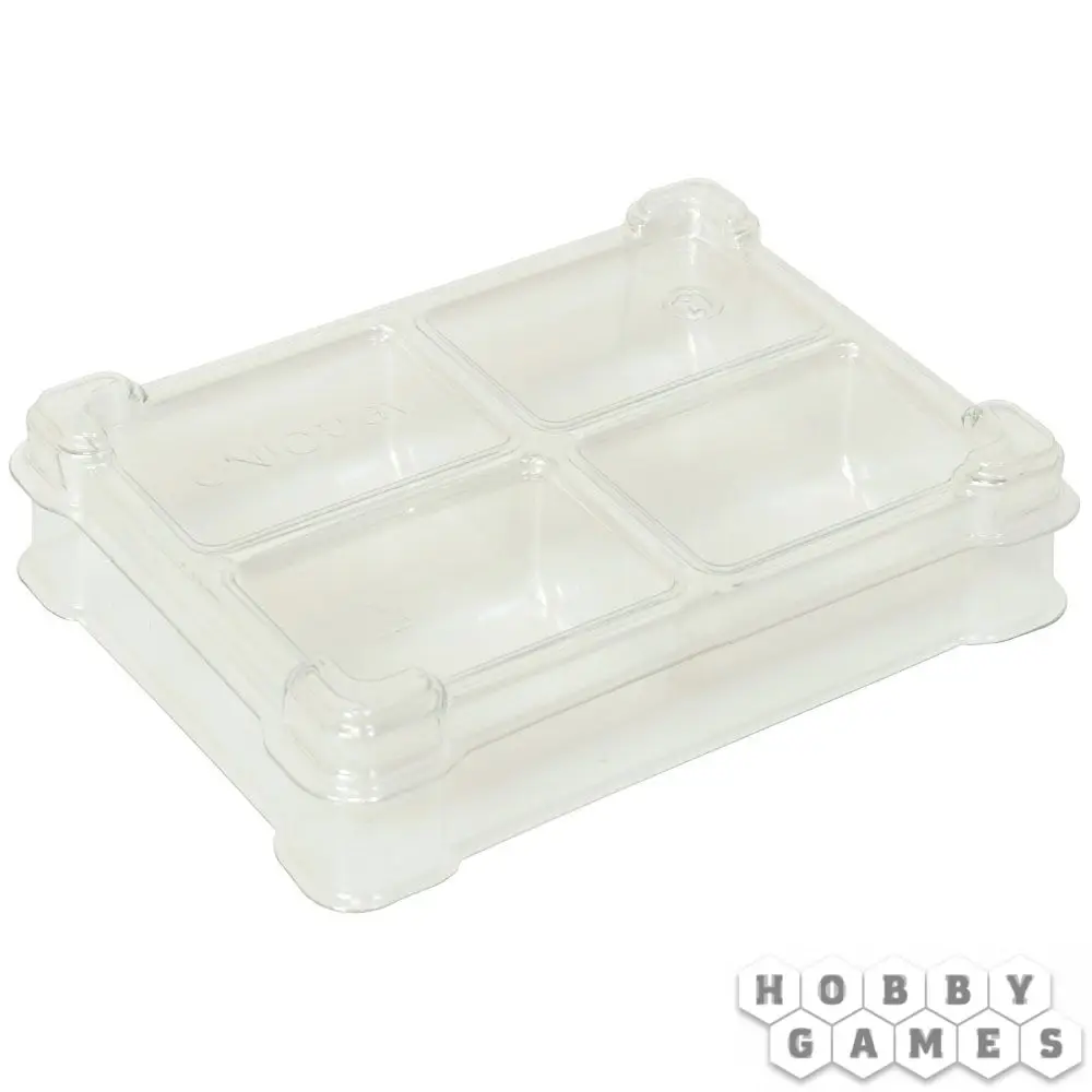 Органайзеры для настольных игр нового поколения! Их особенность в том, что они стали компактнее на 5 мм, за счёт чего помещаются даже в карман. Прочный материал РЕТ не позволит пластику сломаться. Замки крышек теперь прочнее в несколько раз, а их дизайн интереснее за счёт выемок, которые к тому же функциональны, ведь теперь ячейки изолируются друг от друга ещё лучше!
