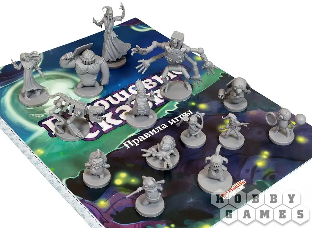 Главный элемент игры – перекидная книга сказок, включающая в себя не только иллюстрации и художественный текст, но также локации и игровые поля. В дополнение к привычным предметам и врагам, используемым в каждом приключении, в игре есть колода находок с тайными картами, предназначенными для определённых сказок. Вас ждёт семь приключений. Каждое займёт около двух часов. Чтобы начать приключение, просто начните читать, и текст направит Вас в нужную сторону.