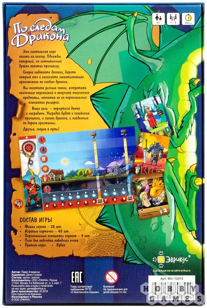 В настольной игре "По следам дракона" вам необходимо не только отыскать принцессу, но и вернуться назад! Станьте храбрым рыцарем и пройдите десять сказочных земель на пути к логову дракона. Общайтесь с персонажами, собирайте экипировку и снаряжение и выходите на бой с драконом максимально подготовленным.