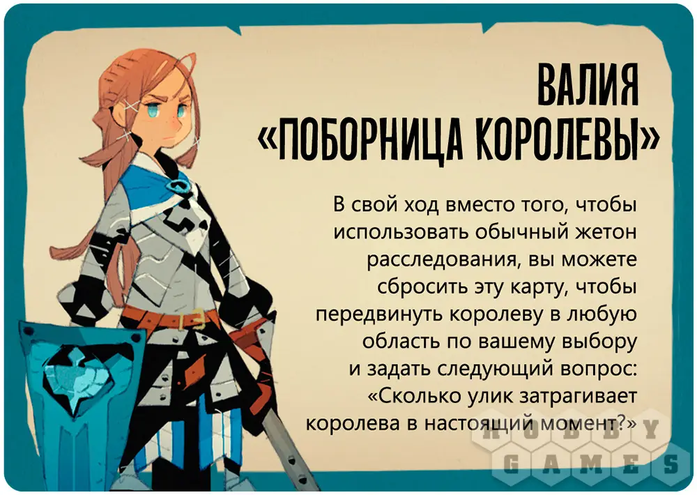 В то же время вам необходимо отыскать собственную комбинацию, которая известна только игроку справа от вас. Как бы ни хотелось, но вы не можете показывать полученные карты разгадок другим игрокам или давать любые подсказки о них каким-либо способом, кроме ответов на установленные правилами вопросы при использовании жетонов расследования.