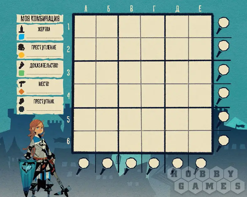 Итак, игроки по очереди совершают ходы, задавая вопросы про горизонтальные и вертикальные ряды с уликами, которые составляют таблицу размером 6 на 6 клеток. В это время можно и нужно делать записи в таблице на своём планшете. Когда у игроков закончатся жетоны расследования, они должны попытаться разгадать свои комбинации, независимо от того, насколько тот или другой вопрошающий ум близок к правильному решению.