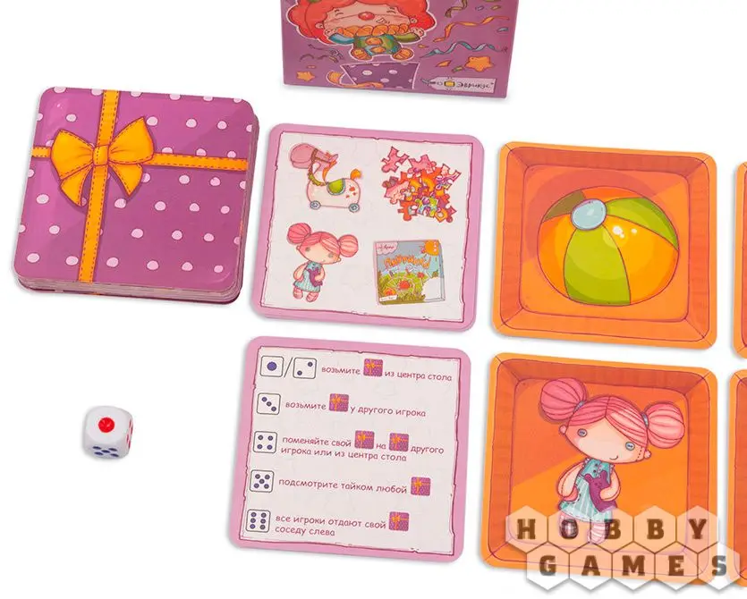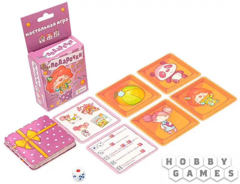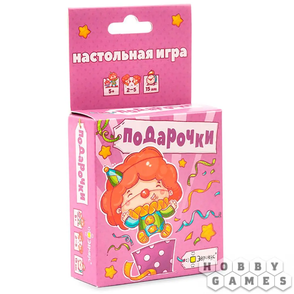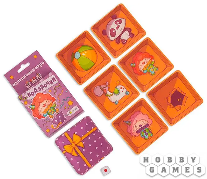 Каждый о чём-то мечтает, а в игре "Подарочки" от издательства "Эврикус" для самых маленьких настольщиков можно исполнить свои мечты и получить все пункты из списка желаний – при помощи весёлых Сёмы и Зёмы, неунывающих клоунов, которые просто обожают дарить подарки. Кидайте кубик, запоминайте выпавшие подарки и не выбирайте пустые коробки!