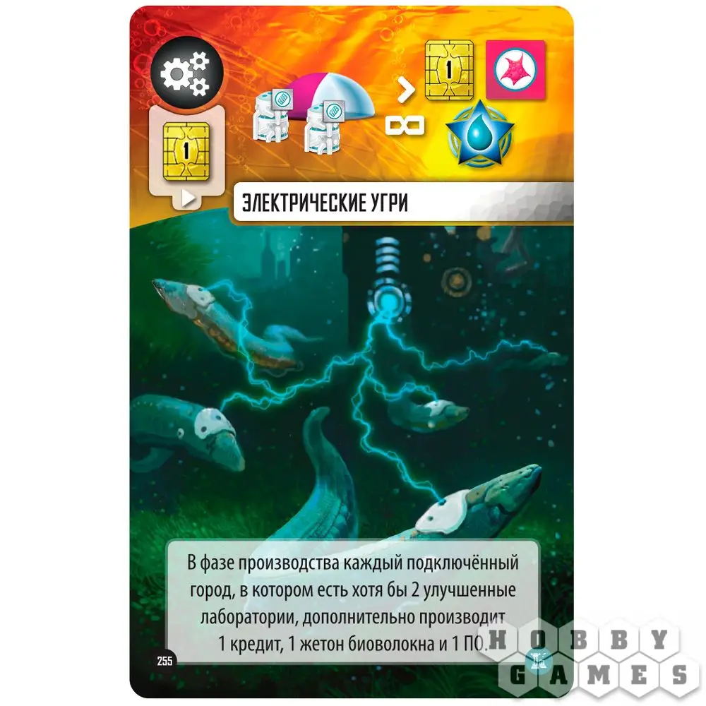 С течением игры время не стоит на месте, и игроки переходят из одной эпохи в другую, предоставляя игрокам новые возможности. По ходу игры вы наращиваете экономику и можете зарабатывать различные ресурсы: сталепласт, биоволокно, водоросли, кредиты, жетоны науки и победные очки. Основная задача игры заключается в строительстве, так что ресурсы вам понадобятся. Помимо различных зданий, строить можно два типа городов, которые имеют важное отличие – симбиотические дороже сами по себе, зато приносят победные очки в процессе игры. Строить города можно на соседних клетках планшета, однако, пока вы не соедините города в сеть с помощью туннеля, город приносить очки не будет.