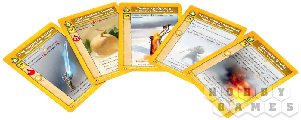 фаза сброса/добора карт — если на руках игрока остаются карты, вы должны сбросить одну на выбор из нескольких зон. Также в эту фазу вы приобретаете очки славы и риска в зависимости от того, в какой зоне остановились. После этого вы можете добрать в руку пять карт приключений.