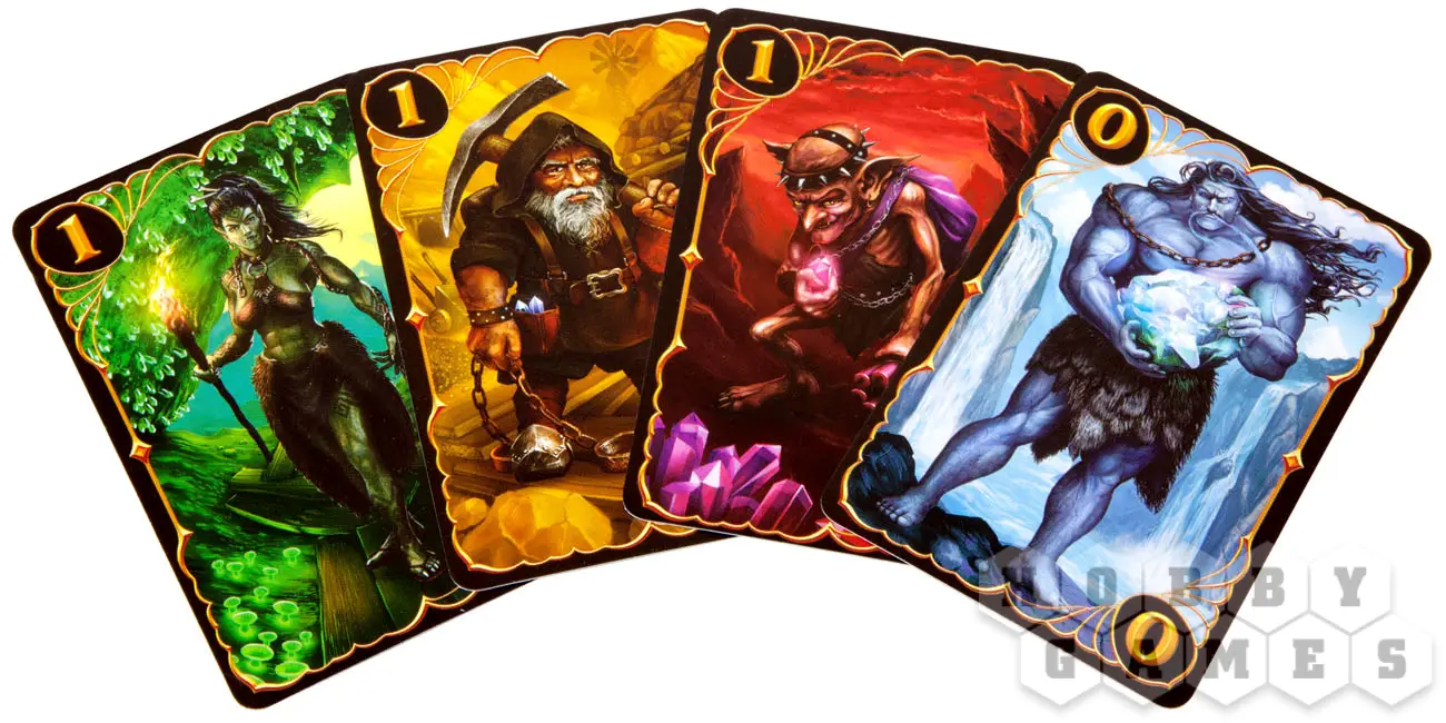 Игра идет следующим образом. В начале, каждый игрок получает на руку по шесть случайных карт, а на середину стола кладутся четыре карты «рудников». Затем, рядом кладут еще четыре карты «отрядов» - это лагерь шахтеров. Карты в лагере и на руках можно использовать только как отряды. Тут и лежит интересный момент – захват рудников можно производить только картами отрядов своего народа, а вот отправлять на захваченные рудники можно только отряды других рас!