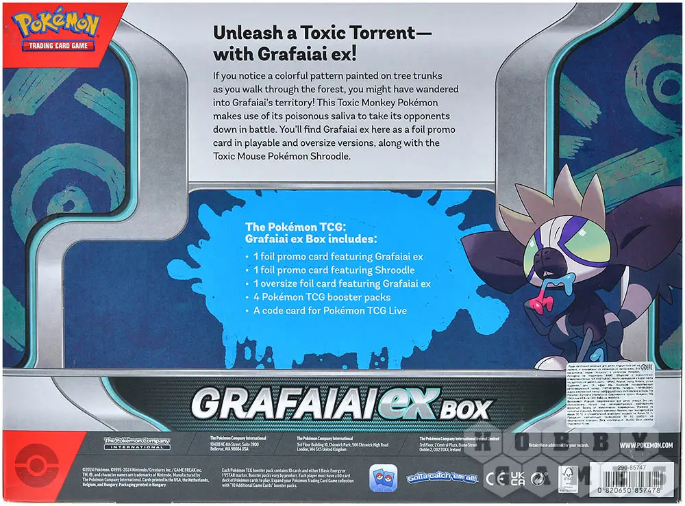 Если, прогуливаясь по лесу, вы заметили красочный узор на стволах деревьев, то вы, скорее всего, забрели на территорию покемона Grafaiai! Этот ядовитый покемон-обезьяна использует свою слюну, чтобы побеждать противников в бою. Остерегайтесь, как бы и в вас не попало!