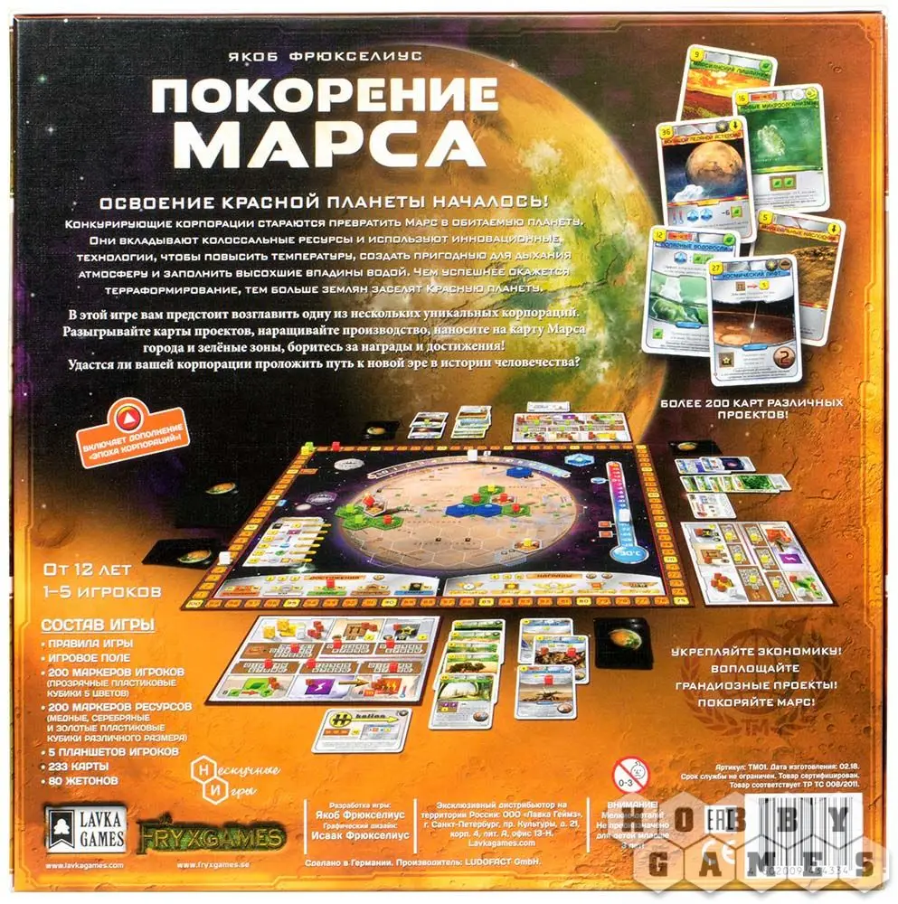 Игрокам предстоит колонизировать Марс, меняя его природные условия, а также климат. В жизнь будут воплощены самые невообразимые и гениальные научные проекты, которые на самом деле существую в реальности. Поднимайте температуру планеты, уровень кислорода, покройте пустоши океанами – всё для того, чтобы создать на Марсе условия, пригодные для жизни. И хотя перед Вами стоит общая цель, которой все игроки стремятся достичь, не забывайте о конкуренции! Каждый будет получать дополнительные очки не только за вклад в освоение Красной планеты, но и за развитие масштабной инфраструктуры во всей Солнечной системе.