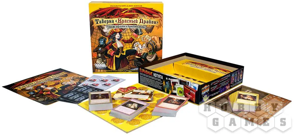 Перед вами полностью самостоятельная игра, которая, однако, совместима и с обычной "Таверной", так что теперь, имея два набора, вы сможете играть большим количеством людей! Попойка ещё никогда не была такой масштабной! К нам присоединяются четыре новых колоритных персонажа, каждый со своей колодой: