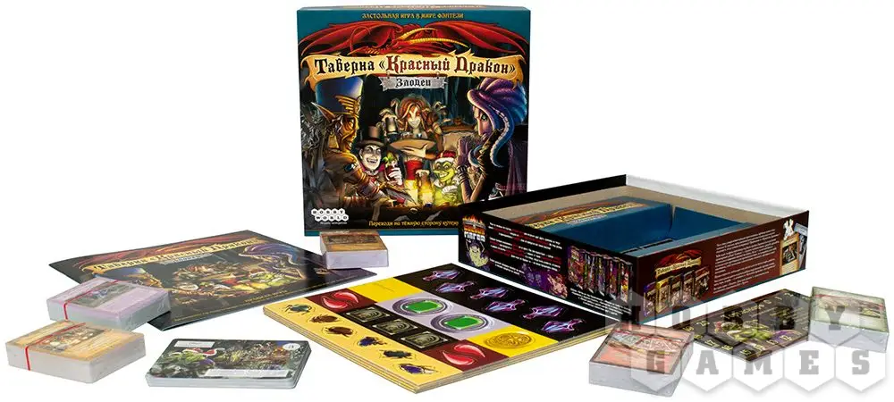 Конечно, злодеи не могут просто так завалиться в "Красного дракона" – но у них есть прекрасная альтернатива, "Пещера Чёрного дракона". Там даже атмосфернее! Познакомьтесь с новыми персонажами серии: ведьмой, читающей мысли, древней эльфийской мумией, вампиром и королём гоблинов. В "Злодеях" вы найдёте свежие механики и много командных режимов, в каждом из которых будет своё сочетание злодеев и их мрачных сил. Карты подземельных событий вряд ли дадут заскучать, а если усилить одного из игроков с помощью специальной колоды, то с ним можно будет сражаться всей компанией!