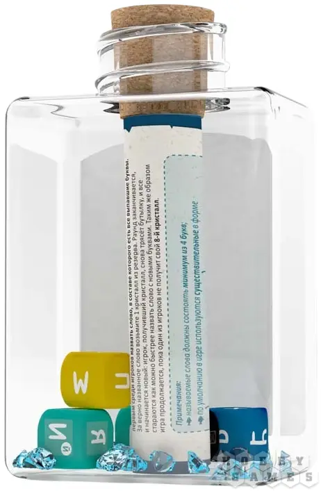 "Послание в бутылке" – это прекрасная игра на эрудицию, отлично подходящая для компаний, желающих проверить свой интеллект. Правила безумно просты: трясите бутылку с кубиками и придумывайте слова, в которых будут содержаться все выпавшие буквы. Удалось? Берите победный кристалл! Совершили ошибку? Увы, с одним из накопленных кристаллов придётся распрощаться. А чтобы было ещё веселее, пробуйте разные режимы игры – благо, их предусмотрено достаточно! Ваша цель – набрать 8 кристаллов и стать мастером эрудиции!
