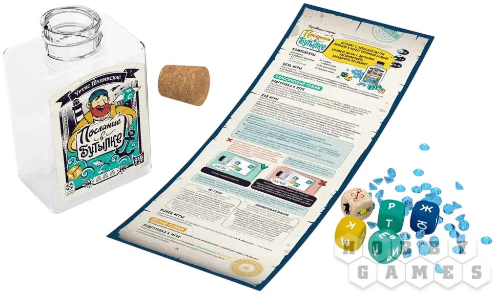 Однажды, гуляя по берегу моря, вы наткнулись на бутылку с загадочным посланием внутри. Конечно же, лишний раз не раздумывая, вы схватили свою находку и унесли к себе домой – с толком и расстановкой читать письмо от таинственного незнакомца, когда-то отправившего сосуд в свободное плавание по волнам. Как только вы достали пробку, вы внезапно обнаружили, что внутри находится не только пергамент, но и ещё какие-то кубики с начертанными на них буквами. Быть может, всё сложнее, чем вы предполагали, и вам предстоит разгадать какой-то шифр? Кажется, остаётся только выяснить всё на опыте...
