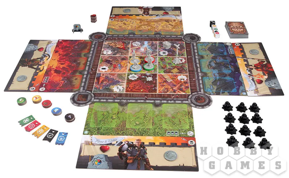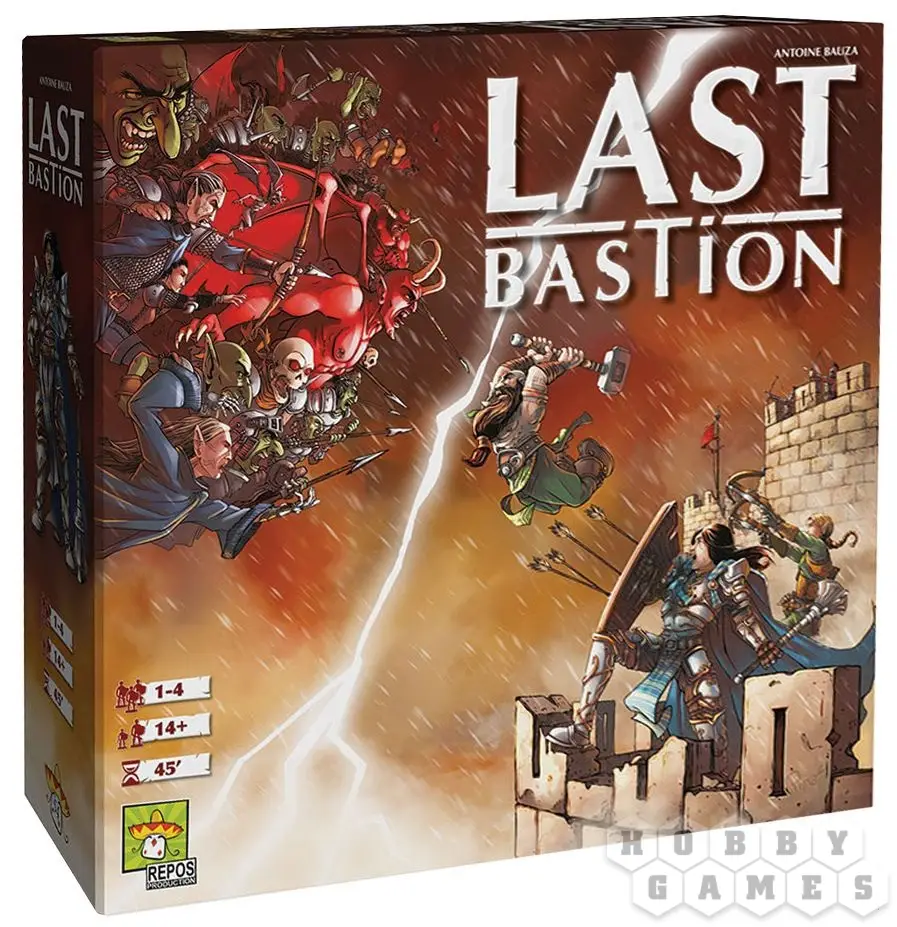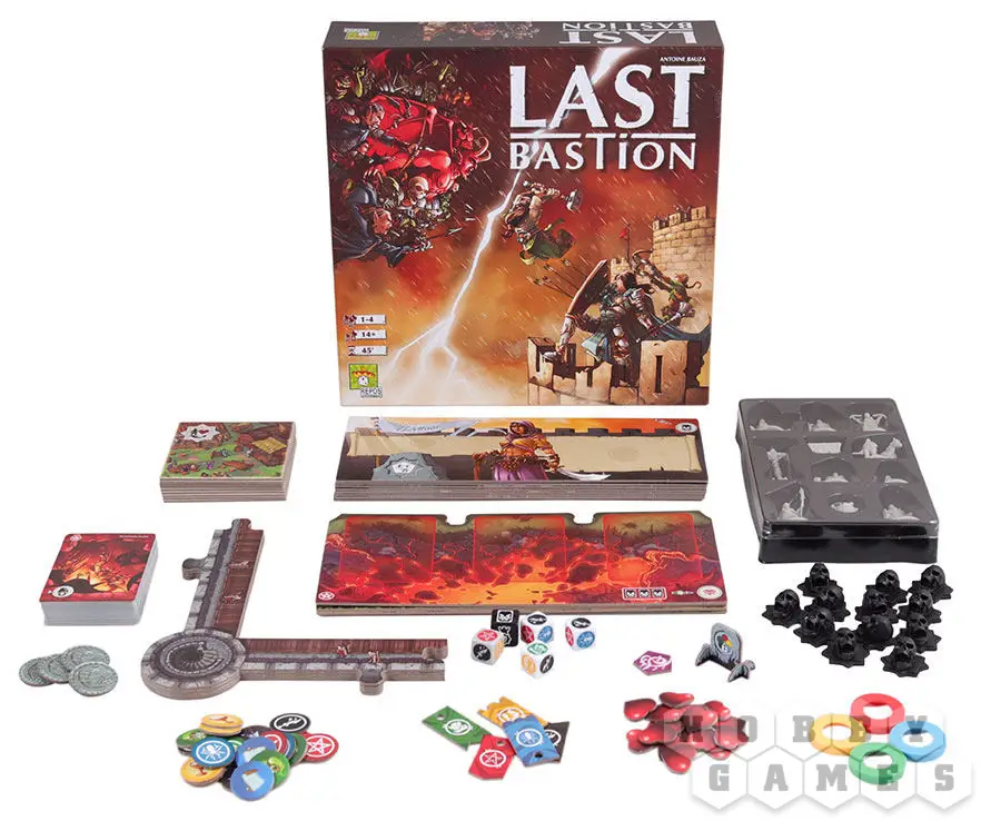Last Bastion - это кооперативная настолка, Ghost Stories в фэнтезийном средневековье про героев, защищающих бастион от орд злой королевы. Партия состоит из чередования фазы орды и фазы героев: раунд за раундом сначала новый монстр появляется на поле и применяются эффекты монстров, а затем игроки совершают одно необязательное перемещение и одно героическое действие. Для победы участникам нужно убить королеву за 9 или менее ходов.