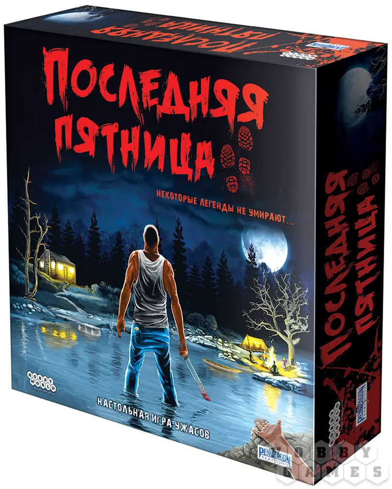 В настольной игре «Последняя пятница» один из участников возьмёт на себя роль смертоносного маньяка, а остальные выступят в роли перепуганных туристов. По мере развития сюжета они из лёгкой добычи превратятся в решительных охотников и постараются изловить психопата. Вас ждёт напряжённый и увлекательный настольный триллер с непредсказуемым финалом…