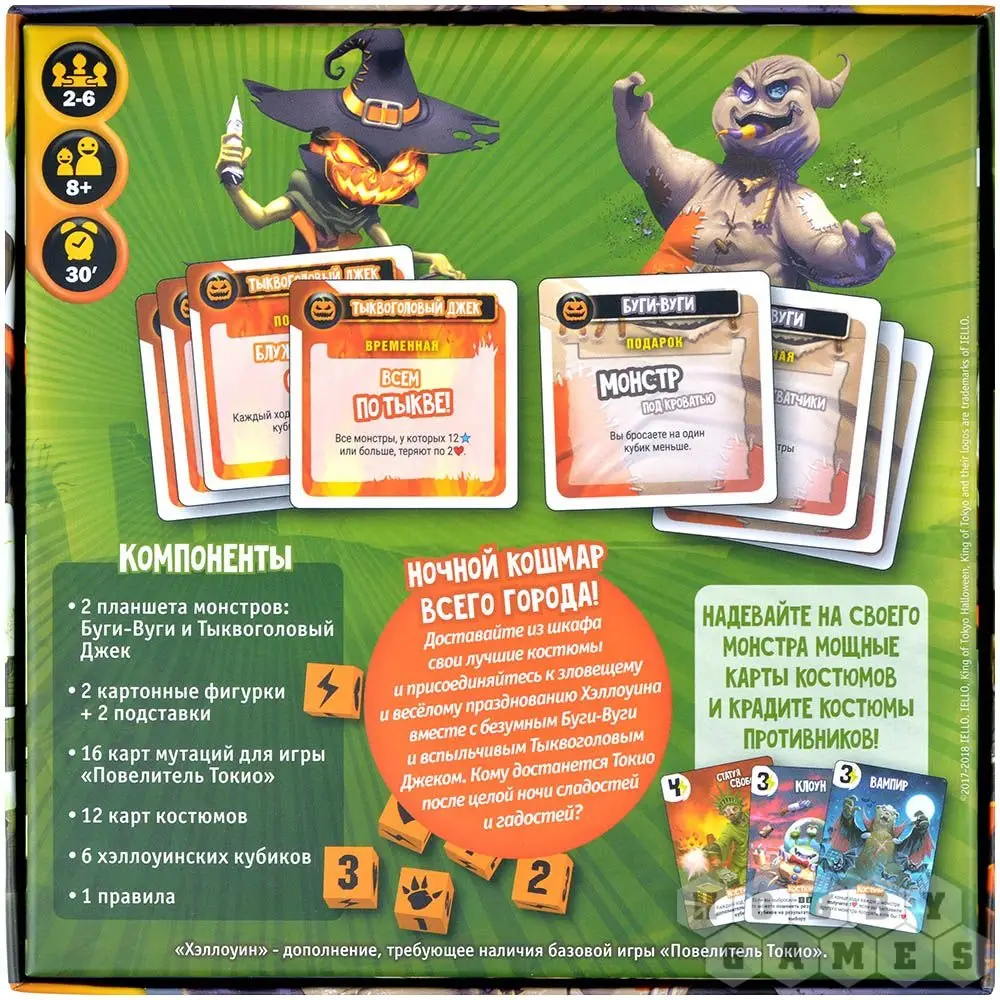 В Токио вот-вот отгремит хэллоуинская вечеринка – и это будет жутко весело! Монстры повеселятся как следует (чего не скажешь о жителях столицы…), так что готовьтесь переодеться в ваш самый кошмарный костюм! Впереди ждут рискованные броски и внезапные мутации!