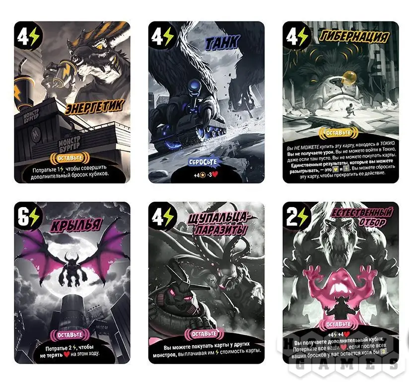 Новые правила порождают новые стратегии – выберите свой путь к победе и уничтожьте противников! Главное – помните, что коварные кубики всегда готовы круто изменить ход партии, а другие монстры будут всячески мешать вам достигнуть цели. Посмотрим, кто окажется на вершине мира и покорит руины Токио!