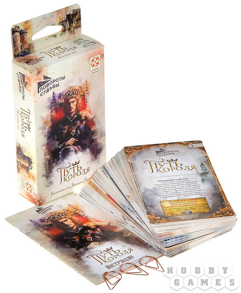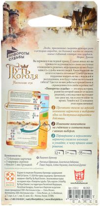"Повороты судьбы: Путь короля" – увлекательная нарративная игра, в которой вы проживёте жизнь принца на пути к трону. Читайте карточки с событиями, принимайте решения и следите за четырьмя ключевыми показателями. Ваши выборы влияют на сюжет мгновенно и в перспективе, а собранные предметы и уникальные титулы делают каждую партию неповторимой. Погрузитесь в атмосферу средневековья с красивыми иллюстрациями и продуманной механикой, где вы – творец своей судьбы.