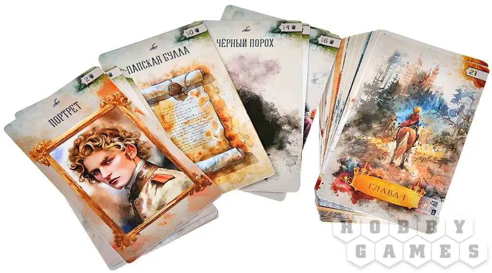 Размер карт: 70x120 мм (рекомендуются протекторы из данного раздела, 73 шт.)