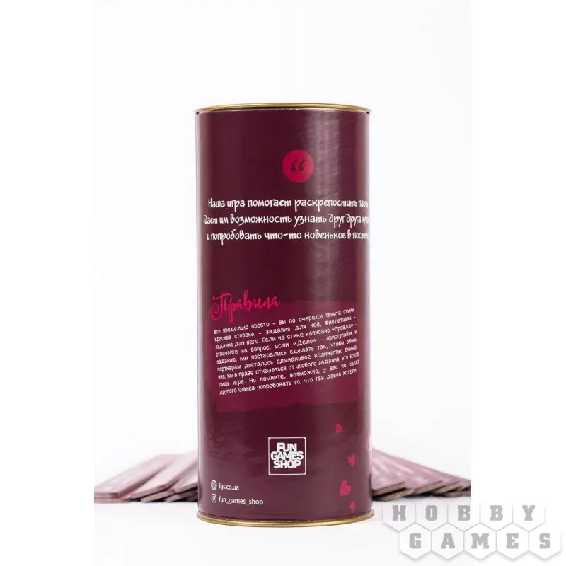 Не стесняйтесь вскрыть стильную упаковку игры при соответствующей обстановке. Тяните один за другим стики с заданиями в слепую. Они будут отличаться по цвету, чтобы определять, кому предназначается задание. Красный цвет – для нее, а фиолетовый – для него. А дальше… смело беритесь за выполнение выпавшего задания!
