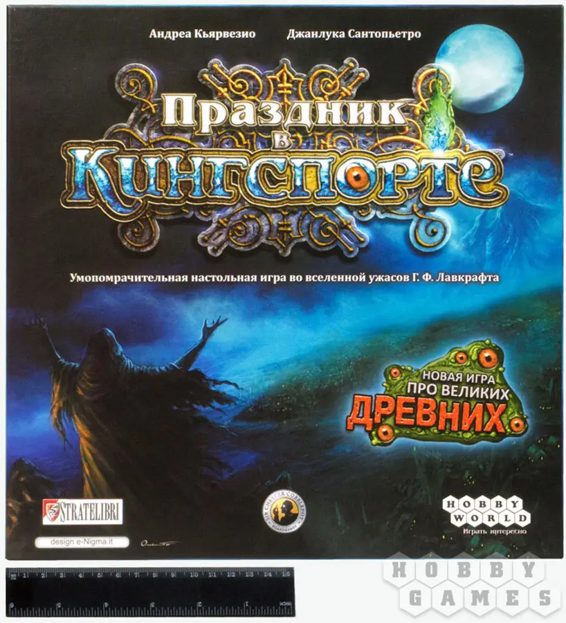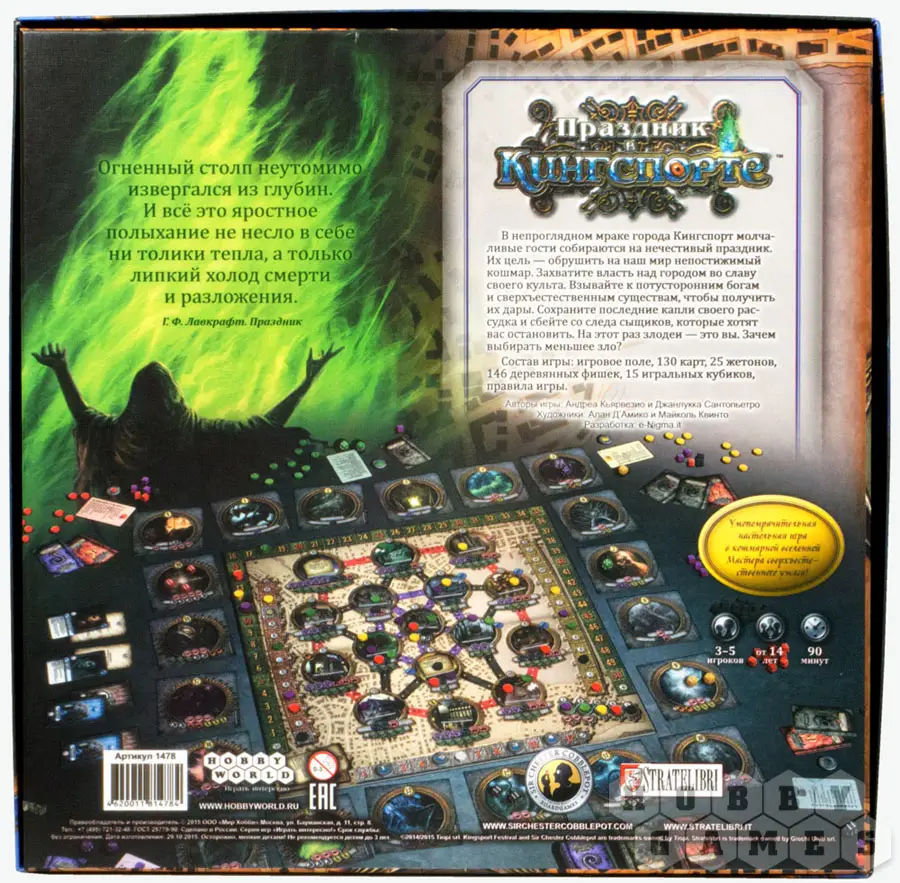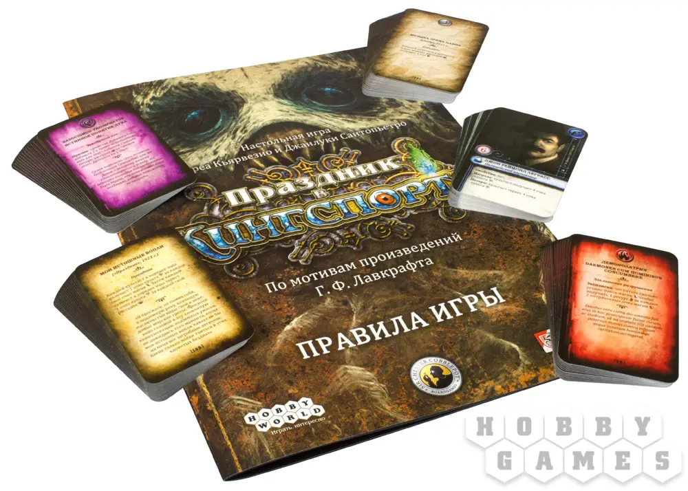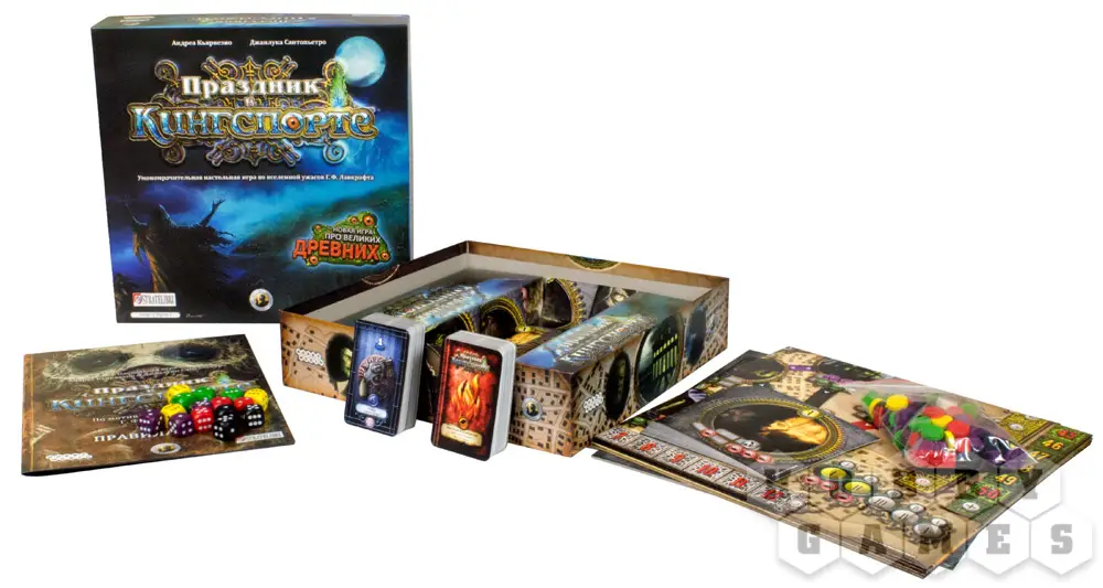 «Праздник в Кингспорте» — настольная игра для 3–5 игроков по мотивам мрачных произведений Говарда Филлипса Лавкрафта. Игрокам предстоит стать верховными жрецами зловещих культов, стремящихся захватить власть над городом. Да, на этот раз игра в знакомом сеттинге не кооперативная, а каждый игрок-культист будет стремиться лишь к своему величию!