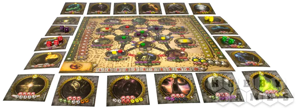 Перед игрой вам необходимо будет выбрать сценарий и подготовить всё к партии. Помимо раздачи различных компонентов игрокам и общей подготовки, важно помнить, что на карте Кингспорта расположены различные здания, а вокруг карты затаилось двадцать Древних Богов, с которым можно будет наладить контакт.