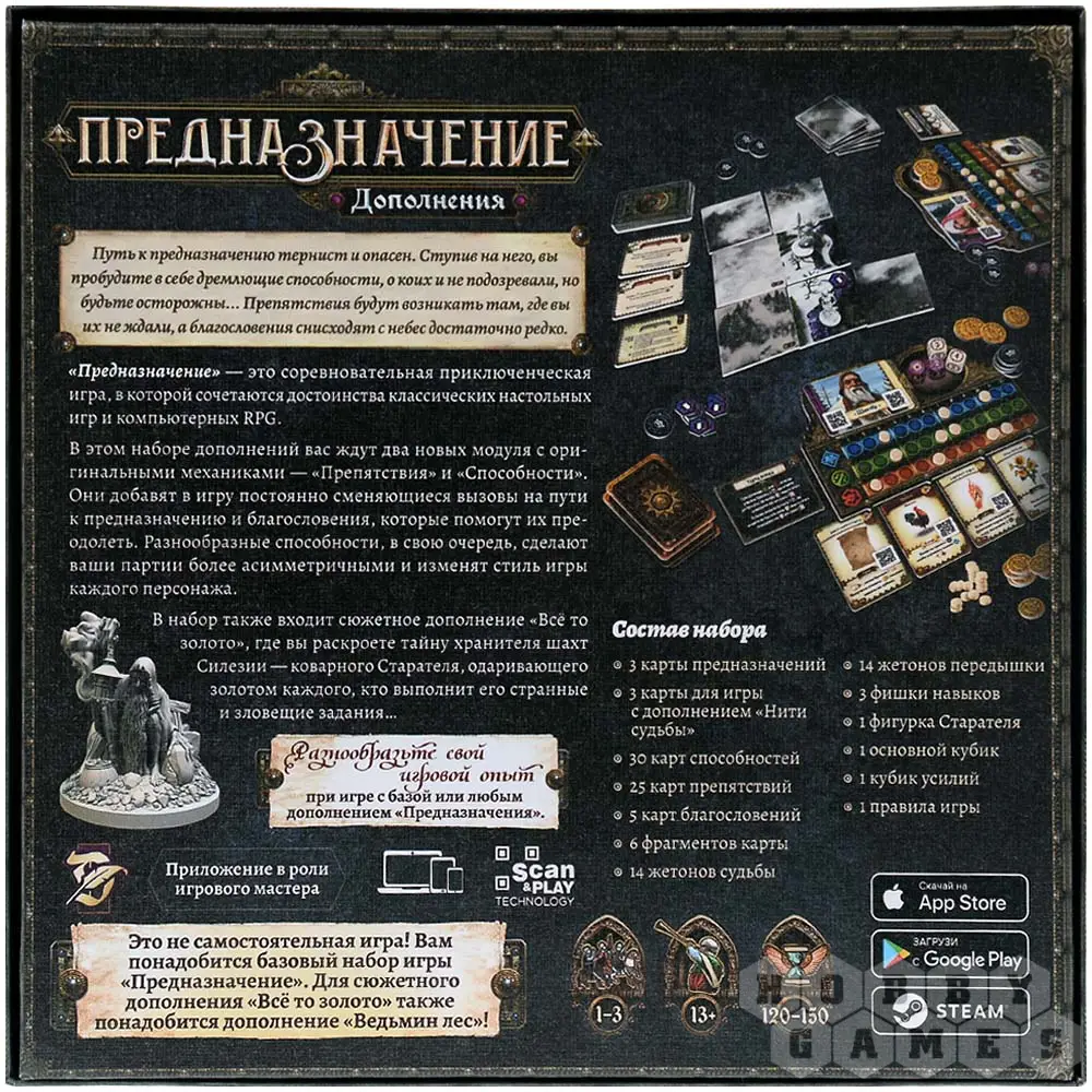 Внимание! Это дополнение. Для игры вам понадобится базовая версия "Предназначение". Для сюжетного дополнения "Всё то золото" также понадобится дополнение "Ведьмин лес".