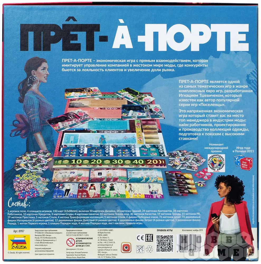 В настольной игре "Прет-а-Порте" вам предстоит прожить в роли управленца годовой период, разделённый на 4 квартала, в конце которых проходят модные показы. Используйте свои навыки стратегического мышления и идеи для построения экономики вашего предприятия: поддерживайте баланс доходов и расходов, заключайте выгодные соглашения с банками, повышайте эффективность за счёт постройки новых зданий. И не забывайте следить за трендами и создавать самые привлекательные модные коллекции. На момент каждого следующего показа вы должны быть во всеоружии, чтобы завоевать престиж и стать победителем игры.