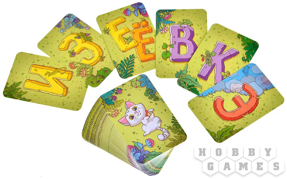 Подготовьте игровое поле и свою фигурку – в командном режиме она будет общая. Перемешайте карты заданий и карты букв, последние разделите между собой поровну, чтобы у каждого была личная мини-колода. Откройте по две буквы, чтобы их все видели. При желании установите таймер – это добавит азарта игре, хотя можно сыграть и без временных ограничений.