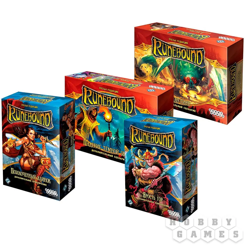 Если базовая версия Runebound разожгла в вас неумолимую страсть к приключениям, этот набор дополнений отлично подойдёт, чтобы утолить её! В набор вошло четыре дополнительных сценария для Runebound: "Ярость гор", "Позолоченный клинок", "В паутине" и "Падение тёмной звезды". В каждом дополнении содержится уникальный герой, новые интересные механики и, конечно, приключения и противники – всё на 10% выгоднее, чем по отдельности. Подвигов много не бывает!