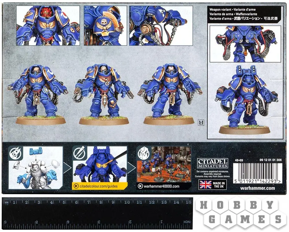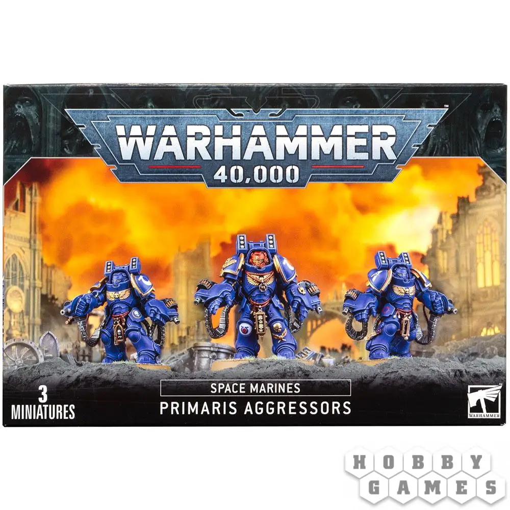 В набор входят все необходимые пластиковые детали для сборки отделения из трёх примарисов-агрессоров. Их необычайно прочные доспехи шире и массивней, чем у других космодесантников, не в последнюю очередь из-за автоболтерных перчаток или перчаток "Пламенный шторм". В коробке вы найдёте по три пары каждого оружия, соединяемого трубками и патронными лентами с огромным ранцем. В случае одного набора перчаток "Пламенный шторм" также можно увидеть втягивающиеся стволы, ведь в ближнем бою кулаки действеннее огня... Если вы выберете болтерные перчатки, то ваши агрессоры также смогут взять гранатомёт "Фраг-шторм".