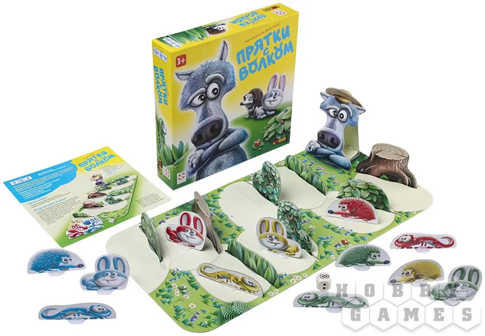 "Прятки с волком" – настольная игра для самых юных игроков, в которой важно быть внимательным, аккуратным и немного хитрым. Игроки помогают своим зверятам пройти по тропинке и добраться до дома, используя укрытия подходящей формы. Игра развивает мелкую моторику и навыки счёта. Короткие партии и простые правила делают её понятной и увлекательной даже для малышей от 3 лет!
