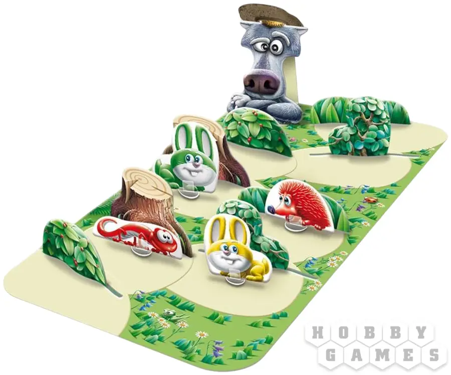 Игроки ходят по очереди, бросая кубик и передвигая одного из своих зверят вперёд по тропинке. Выпавшее число определяет, на сколько клеток можно продвинуться. Главное – вовремя спрятаться: зверёк может укрыться за кустом или пнём только подходящей формы. За одним укрытием может скрываться сразу несколько животных. Если выпадает значок глаза, волк просыпается, и все зверята, спрятавшиеся за неподходящими укрытиями, пугаются и убегают обратно в начало пути. Каждый ход превращается в маленькую проверку на внимательность и осторожность!
