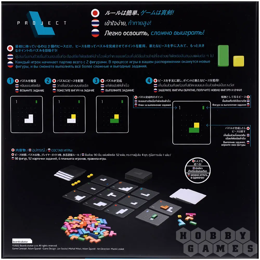 Погрузитесь в увлекательный мир абстрактных головоломок, где нужно заполнять карточки-задания фигурами разных форм. Начиная всего с двух фигур, вы будете постепенно расширять свои возможности, улучшать и обменивать их, стремясь создать эффективную систему для выполнения как можно большего числа заданий. Игра отличается простыми правилами, но при этом предлагает глубокий и насыщенный тактический геймплей, где каждое решение влияет на будущие ходы. Стильные двухслойные планшеты с углублениями и глянцевые пластиковые фигуры делают процесс не только интеллектуальным, но и эстетически приятным. "Проект L" идеально подойдёт любителям логических задач, которые ценят баланс между доступностью и глубиной. А ещё в эту настолку можно сыграть всей семьёй и совместить приятное с полезным: общение с развитием навыков! Так скорее же соберите свои идеальные комбинации и испытайте удовольствие от безупречно выполненного плана!