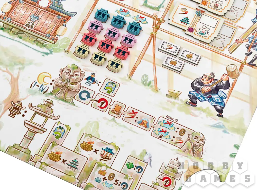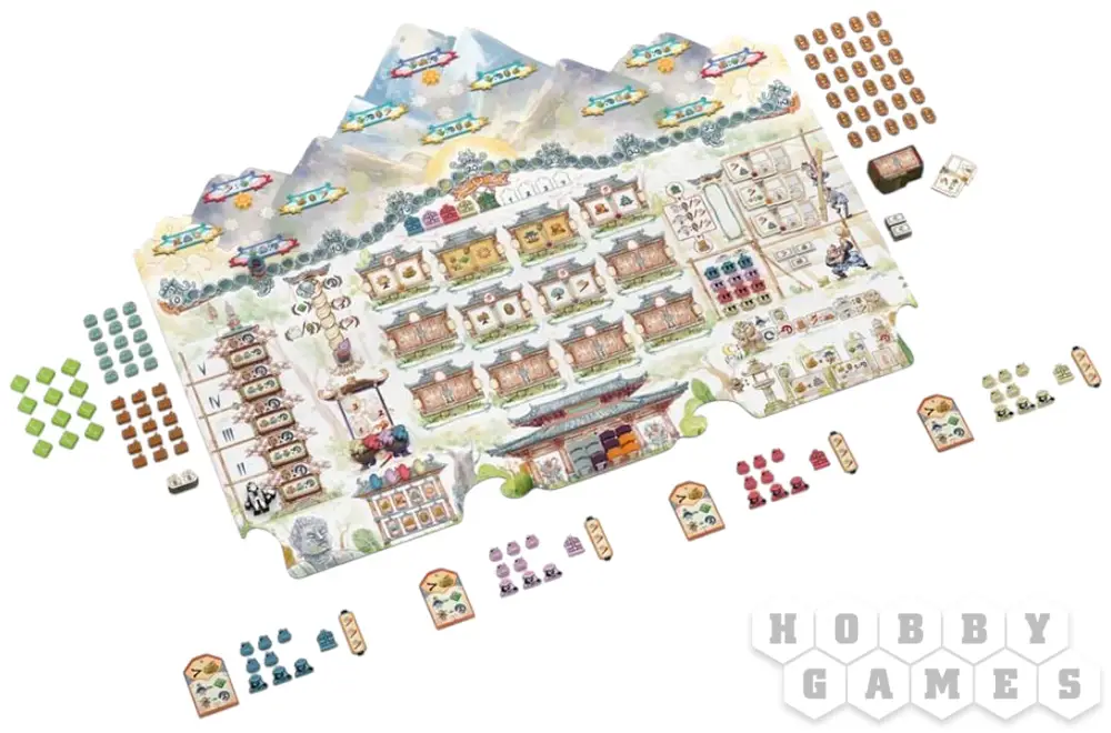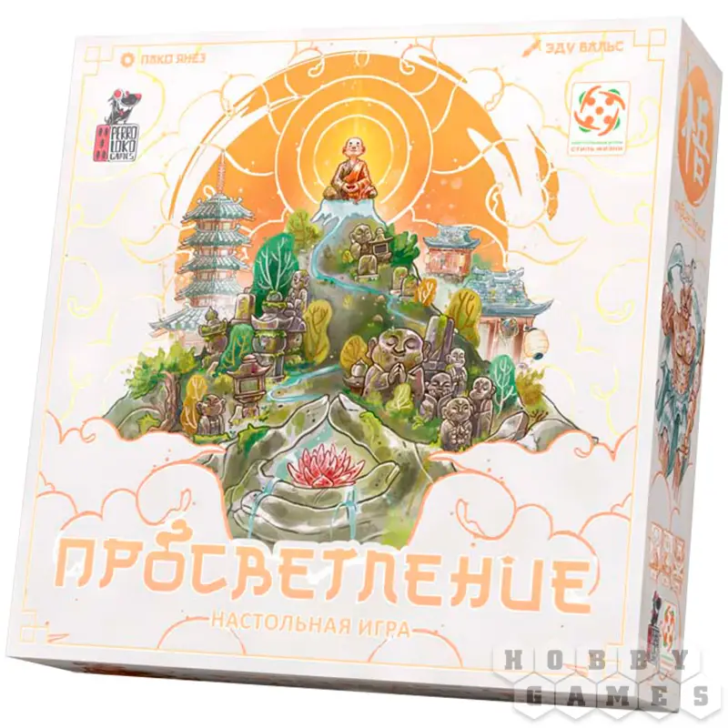 А ещё "Просветление" – это настольная игра, в которой вам предстоит состязаться в продвижении по пути к просветлению. Ваша задача – возводить алтари и направлять к ним верующих для совершения молитв, поддерживать монахов в их стремлении к духовному озарению, а также содействовать архитектору в создании Великой пагоды.
