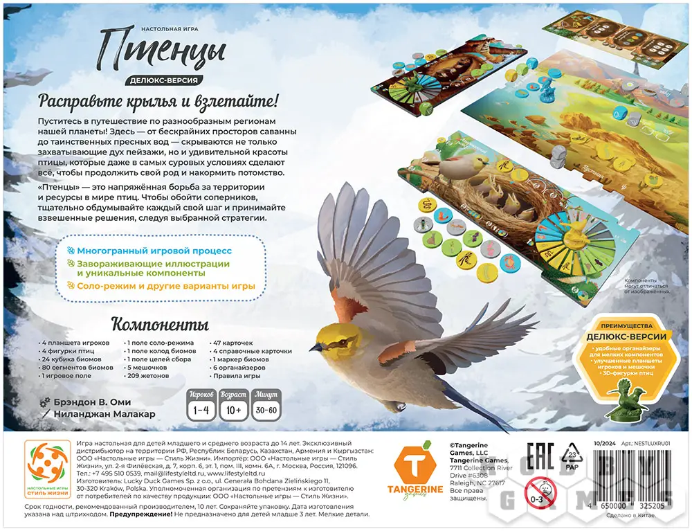 "Птенцы. Делюкс" – это увлекательная игра, где вы не сражаетесь напрямую, но постоянно ощущаете присутствие соперников: кто-то раньше займёт нужный биом, кто-то уведёт ценный ресурс, а кто-то идеально подстроится под ситуацию на поле. Игра поощряет вдумчивые решения и умение адаптироваться – планы приходится менять по ходу партии, реагируя на действия других игроков и доступные возможности!