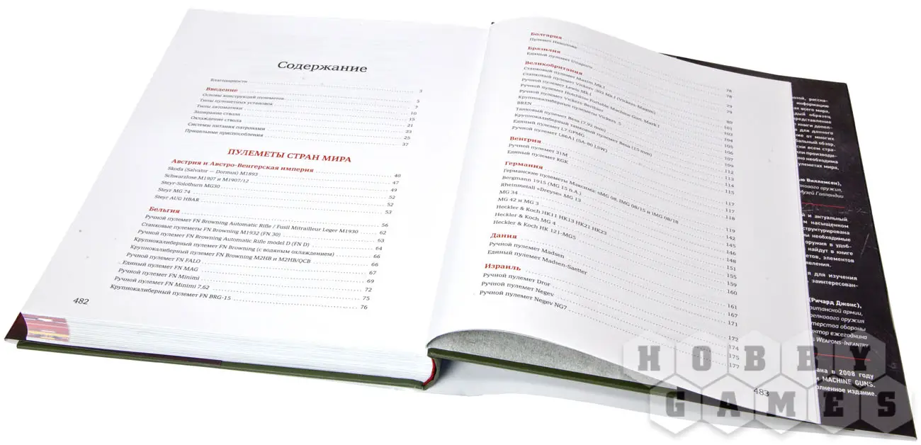 Книга разбита на несколько частей. Введение уделяет внимание описанию элементов устройства пулеметов. Основная часть содержит разделы по странам мира, в которых дается исторический обзор развития пулеметов в данной стране, а также описания самых важных и интересных систем. Приложение содержит справку об основных типах патронов для пулеметов, описанных в книге. Все описания дополнены иллюстрациями, фотографиями и схемами.