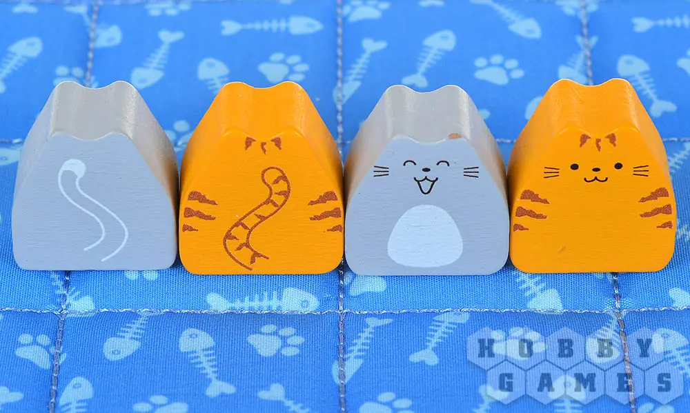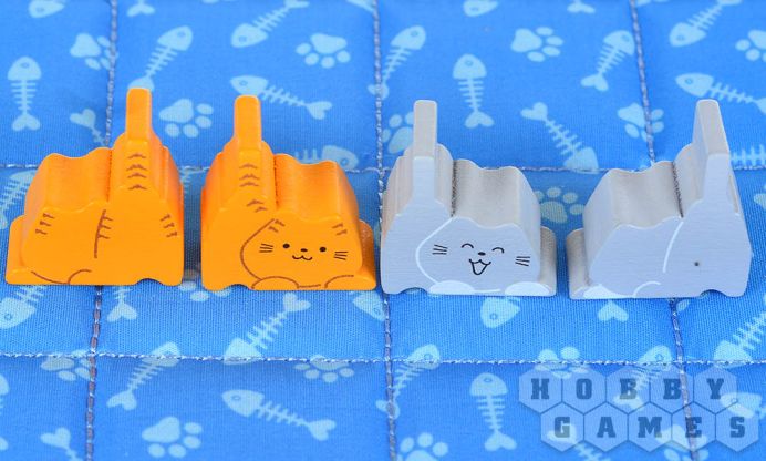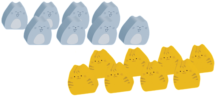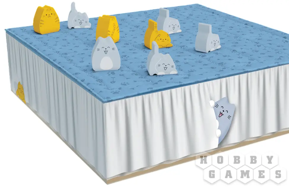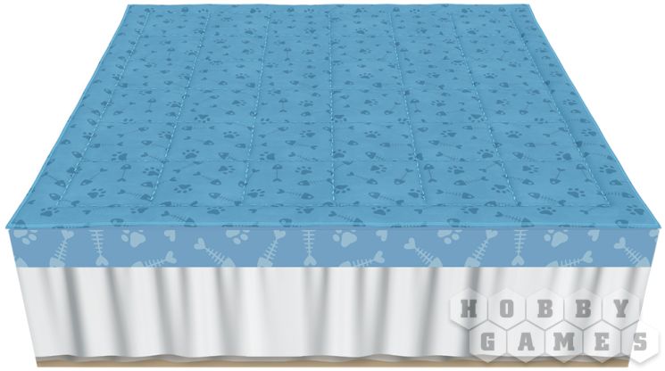 Переверните дно коробки и накройте его стёганым одеялом – это и будет ваша кровать. Ой, то есть, игровое поле! Выберите цвет котиков и возьмите все их фишки – 8 котят и 8 взрослых котов (последние пока что не будут вам доступны). Затем определите первого игрока, это будет очень просто: кто последним гладил кота, тот и первый!