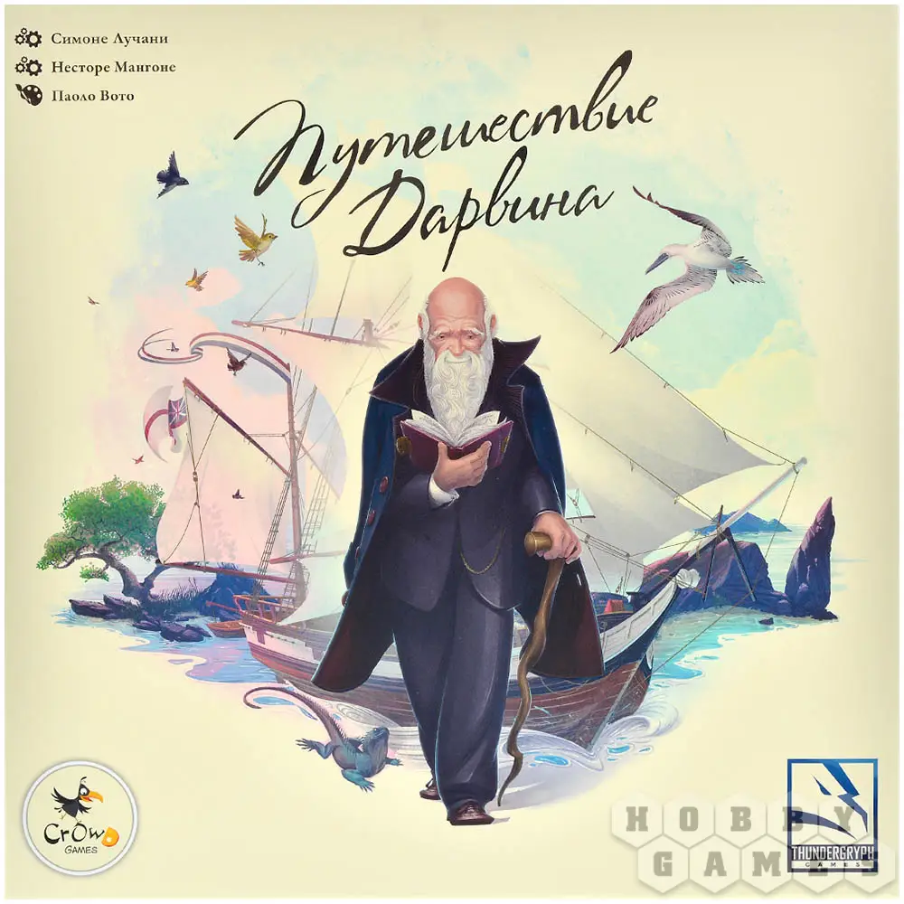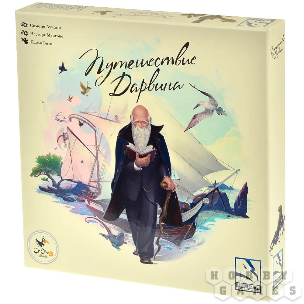"Путешествие Дарвина" – стратегическая настольная игра для 1-4 участников, в которой вы управляете экспедицией, нанимаете ассистентов, исследуете регионы, собираете редкие образцы и создаёте научные труды. Механика построена на евро-принципах: менеджмент ресурсов, планирование действий и развитие собственной лаборатории. Ассистенты – зоологи, ботаники и другие специалисты – помогают вам открывать новые виды и продвигаться по следу Дарвина. Каждый ваш шаг приближает к победе, но и соперники не дремлют. Пути к успеху разнообразны – выбирайте стратегию, развивайте теории и наблюдайте, как маленькие детали складываются в великое открытие.