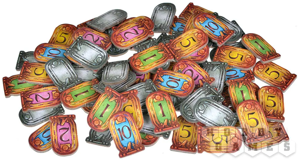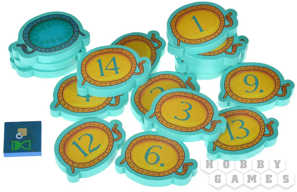 Если вы решили взять жетон, то просто вытяните случайный из мешочка и разместите его на свободное крайнее левое деление аукционного ряда. Если выложить жетон нельзя, то и действие это выполнить тоже нельзя.