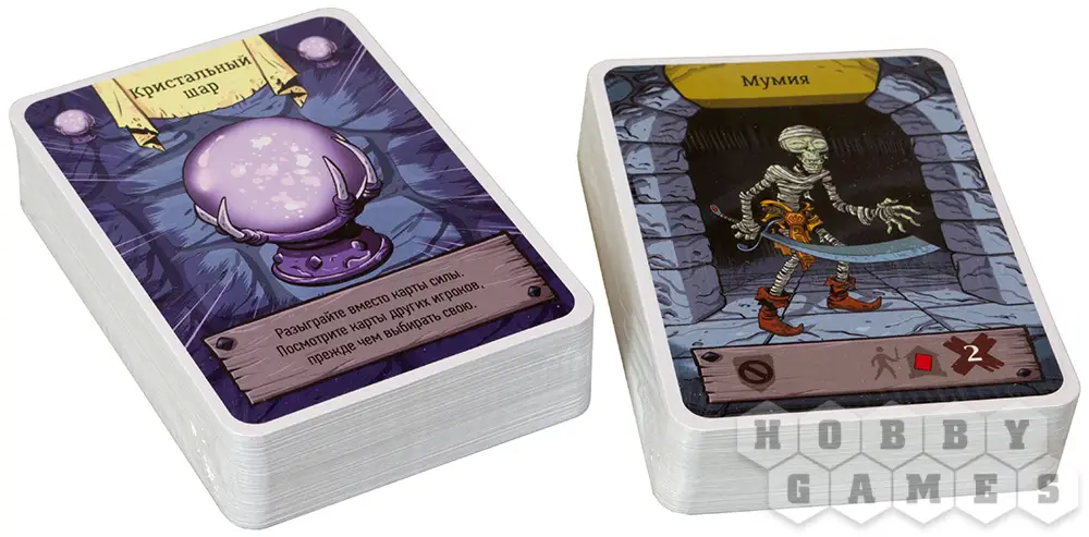 Розыгрыш карт силы – самое сердце игры! В каждой комнате игроки будут делать закрытые ставки с помощью карт силы с номиналом от 1 до 5. Получается, что за один этаж подземелья вы как раз потратите свой набор, а затем восстановите его на следующем этаже. Если доживёте… Чем выше номинал – тем выше её сила и эффект. Вам предстоит заранее продумать, где и какие ставки принесут наибольшую пользу! Здесь необходимо проявить хладнокровие и острый ум