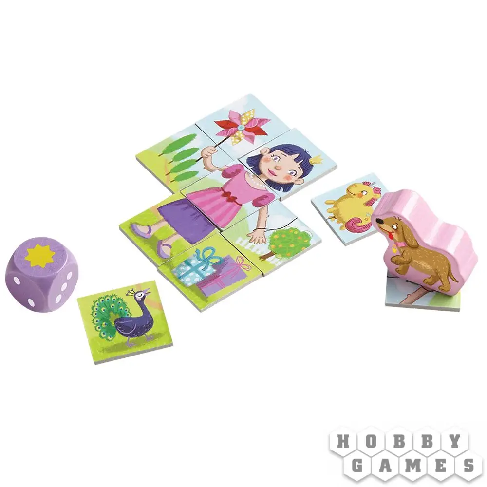 Каждому игроку необходимо полностью собрать квадрат-мозаику, состоящую из девяти тайлов. Центральный тайл у игроков уже есть, на нём нарисовано туловище девочки. Все остальные тайлы раскладываются по столу в виде кольца, на один из жетонов ставится фигурка Бобика.