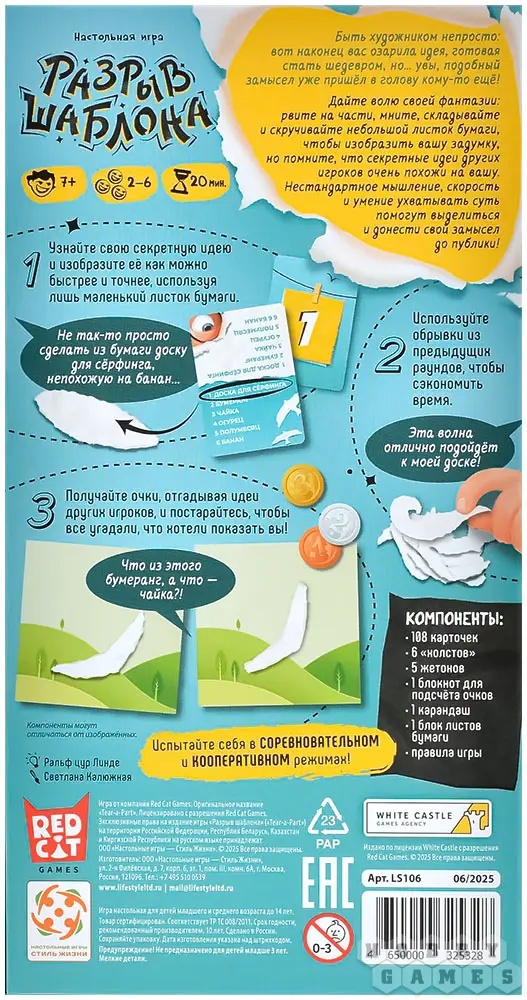 Уникальность игры – в её простоте и глубине одновременно: здесь важны не художественные навыки, а способность мыслить нестандартно и быстро реагировать. Яркий дизайн, качественные компоненты и несколько режимов игры делают настолку идеальным выбором для семейных вечеров и весёлых встреч с друзьями.