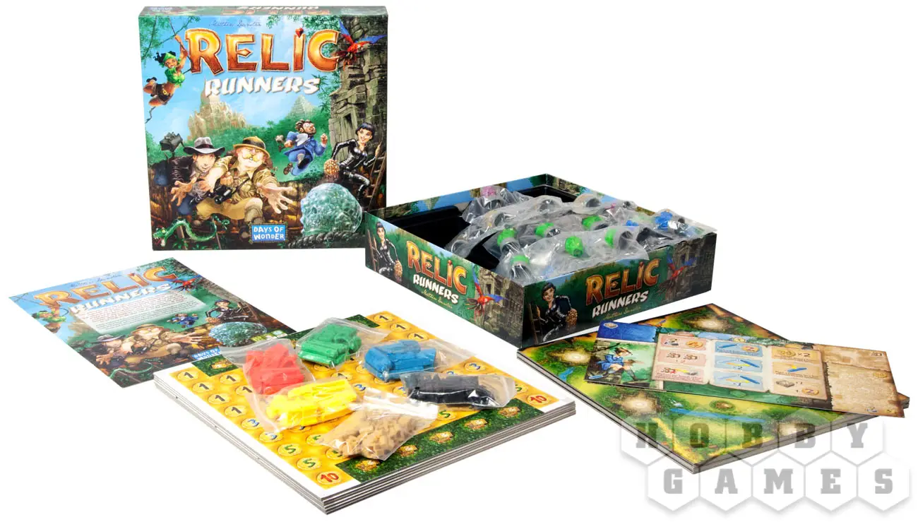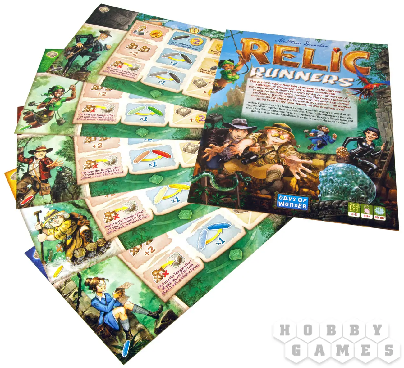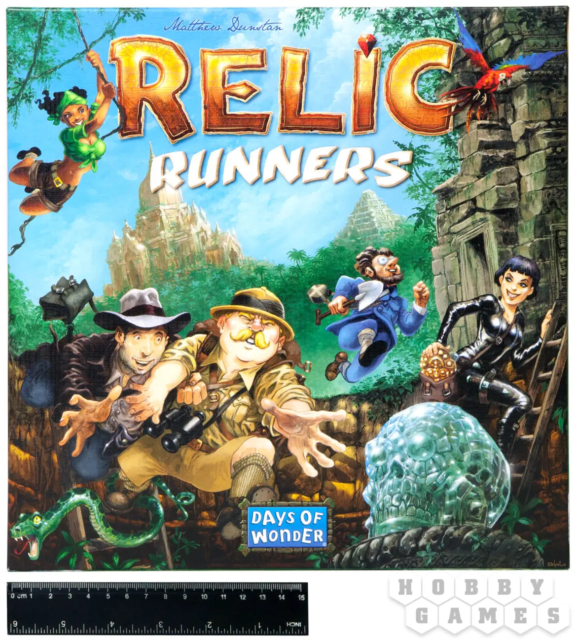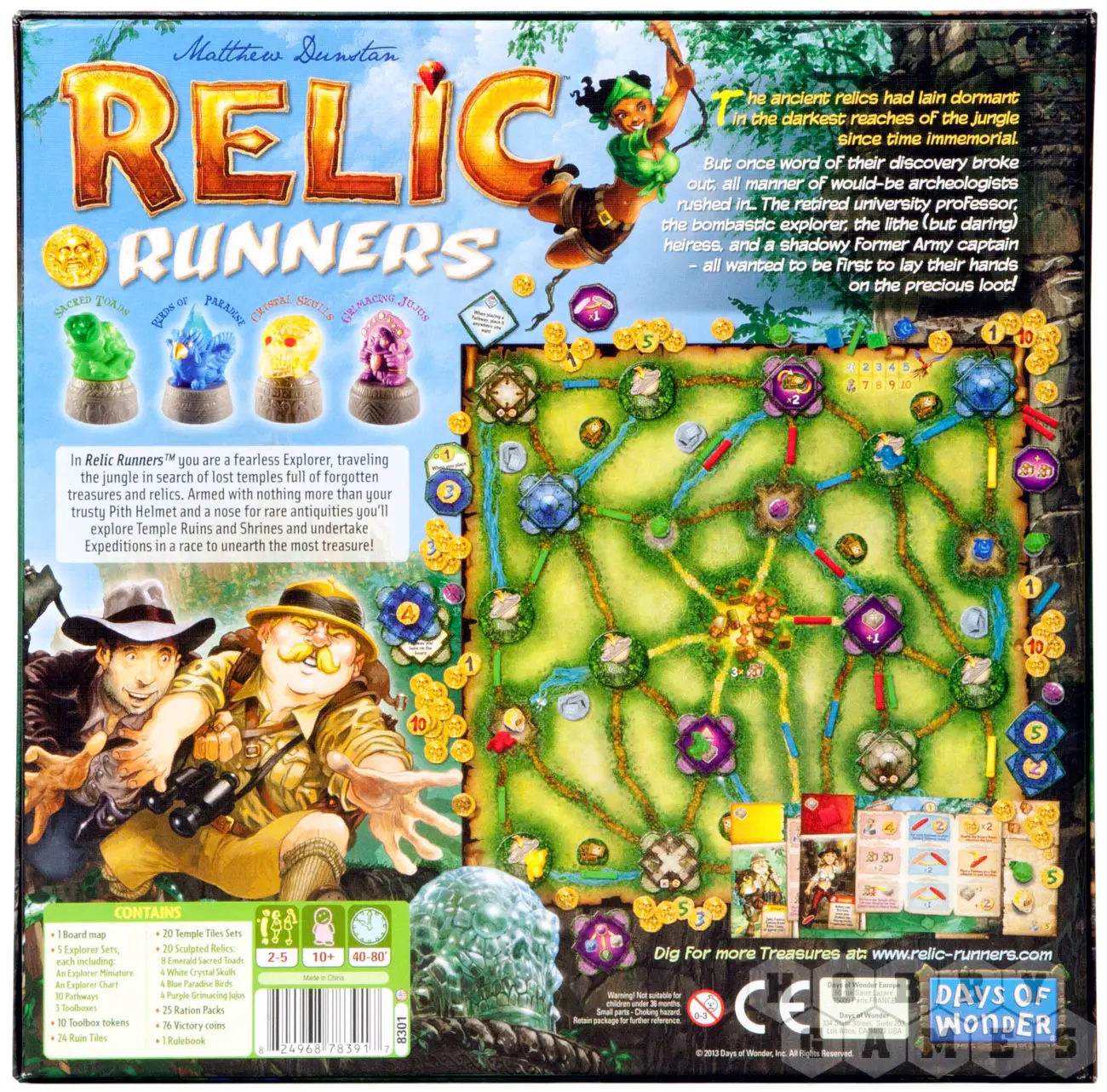 В настольной игре «Relic Runners» Вы – бесстрашный Исследователь, пробирающийся сквозь джунгли в поисках заброшенных храмов, полных сокровищ и реликвий прошлого. Вооружившись пробковым шлемом и чутьем на антиквариат, Вы будете исследовать руины храмов и святилищ. Для этого надо снаряжать целые экспедиции, а затем пытаться наперегонки с соперниками отрыть как можно больше сокровищ!