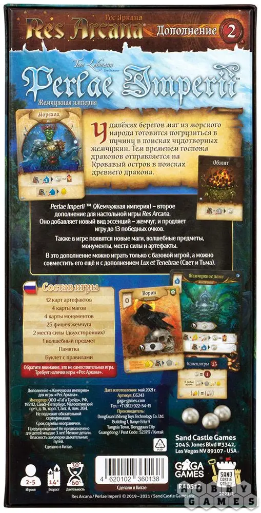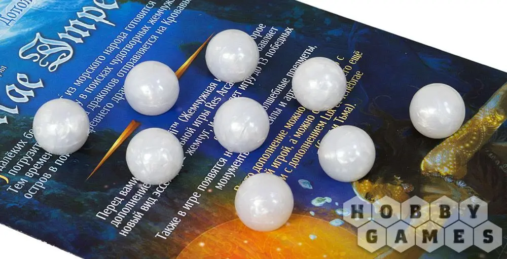 Дополнение "Рес Аркана: Жемчужные Империи" для настольной карточной игры "Рес Аркана" переносит магические сражения в пучину океана. И не спроста! Дополнение вводит новый вид эссенции – жемчужины. Это уникальный ресурс, и ценность его очень высока. А всё потому, что он может открыть стратегические и тактические возможности, которые до сих пор были неведомы ни одному волшебнику! Жемчужины можно обменять на другие недостающие эссенции или золото, или сохранить их до конца игры – все неиспользованные жемчужины принесут дополнительные очки победы.