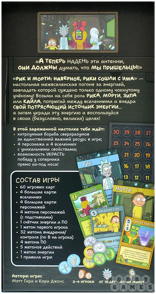 В настолке "Рик и Морти: Наверное, Рики сошли с ума" вы сможете примерить на себя роль либо одного из гениальных учёных, либо неуклюжего, но всегда верного спутника Рика – Морти. Сражайтесь за господство в мини-вселенных, исследуйте таинственные измерения и докажите, что именно ваш мозг – настоящий космический двигатель!
