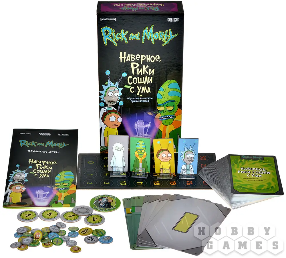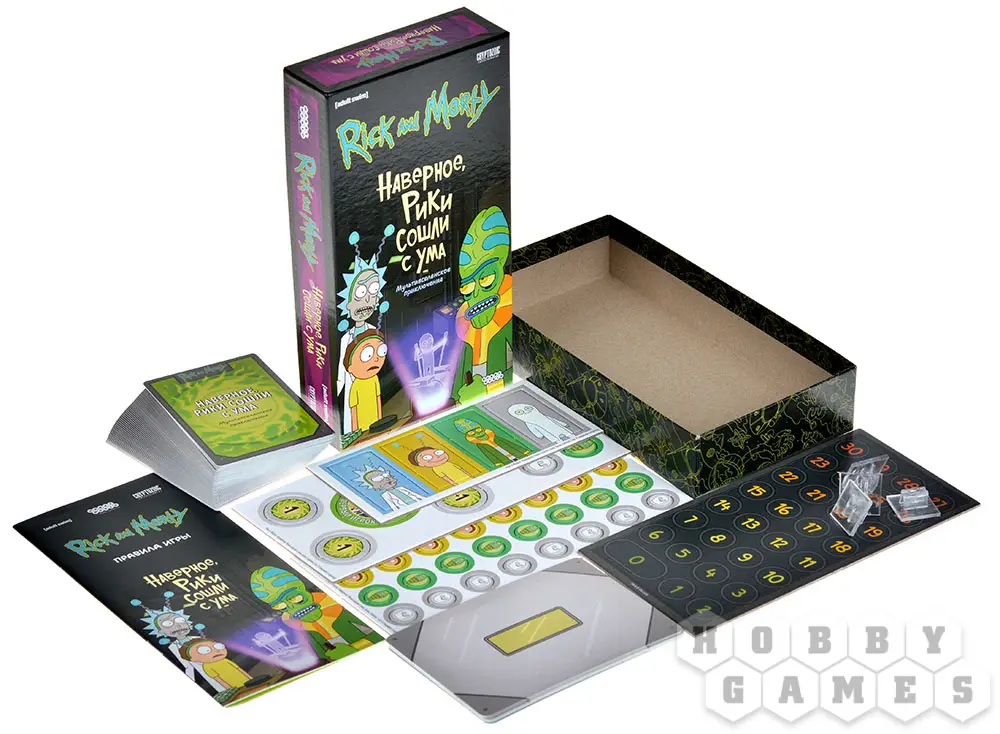 А что касается настолки "Рик и Морти: Наверное, Рики сошли с ума", то мы попадаем прямиком в микровселенную, созданную Риком для зарядки аккумулятора его космического корабля. Аккумулятор неожиданно сдох и дед с внуком отправляются прямо внутрь него, чтобы разобраться в чем дело.