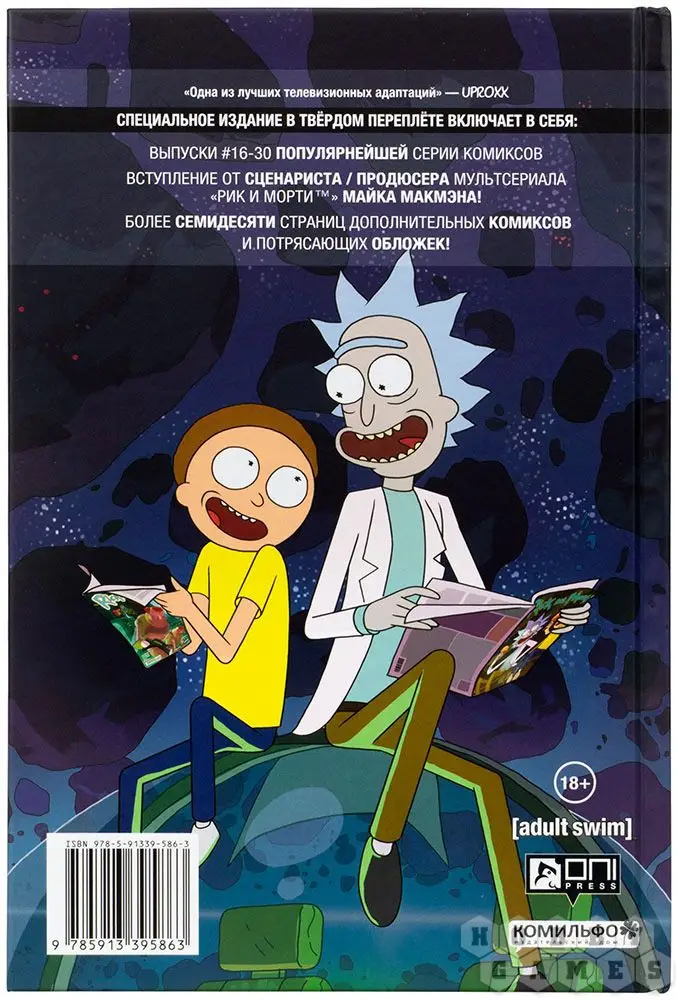 Вы – преданный фанат "Рика и Морти"? В этом вы точно не одиноки, ведь этот до безумия смешной мультсериал действительно стал культовым! Приключения недотёпы Морти, глуповатого подростка-школьника, и гениального и харизматичного учёного Рика, его родного деда, продолжают приковывать к себе внимание поклонников по всему миру. К сожалению, чтобы "проглотить" новый сезон, зрителям нужно намного меньше времени, чем создателям на его производство. Несправедливая сущность киноиндустрии на её современном уровне развития приводит к тому, что фанаты вечно ждут новый сезон – пока проект не закроют. Скрасить ожидание очередного сезона "Рика и Морти" вам поможет этот комикс, ведь его сюжет не дублирует уже известные истории, а рассказывает новые!