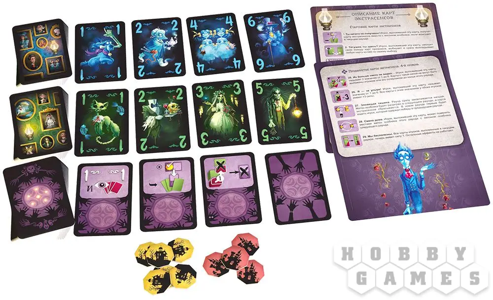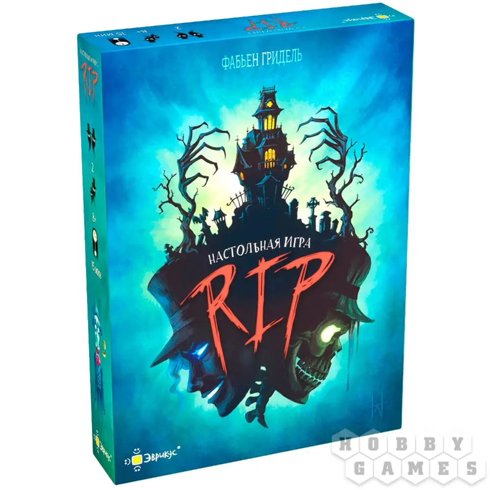RIP – это карточное тактическое противостояние двух игроков в мире паранормального. На стол выкладываются десять карт экстрасенсов, каждый из которых оберегает свой особняк (обозначен жетоном). У игроков есть своя колода карт призраков, которых они отправляют в бой для захвата особняка. В порядке очереди каждый игрок может либо не выкладывать карты вовсе, либо выложить от одной до нескольких карт. Каждый призрак по своему силён, так что разыгрывайте карты с умом, чтобы не дать сопернику превзойти вас. Задача каждого игрока – захватить или 3 замка, или 4 усадьбы. Кто первым достигнет одной из этой цели и запугает оппонента до смерти, тот и победил.