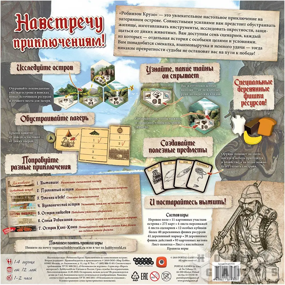 Распаковки игры "Робинзон Крузо: Приключения на таинственном острове. Вторая редакция"
