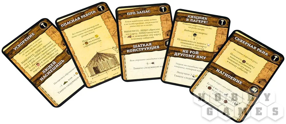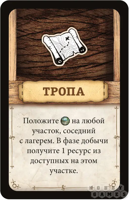 Фаза добычи – игроки получаются ресурсы с участка, где расположен лагерь, поэтому стоит хорошенько обдумывать, где вы остановитесь на очередной ночлег