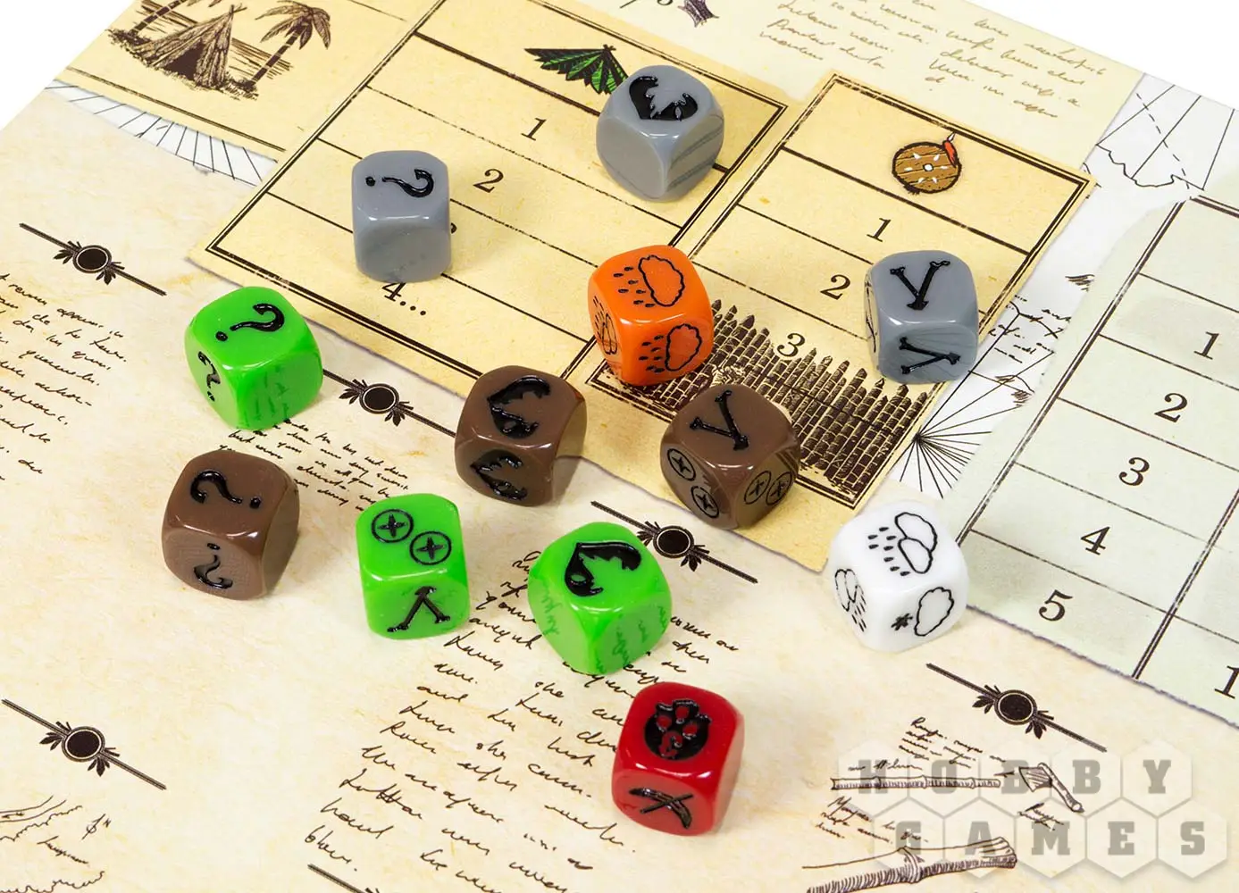 Фаза погоды – бросок кубиков и жетоны погоды определят, предстоит ли вам бороться с суровым климатом острова